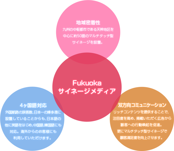 さらに、天神地区に集中的に設置し、ターゲットを限定することでより高い広告効果を得ることができます。