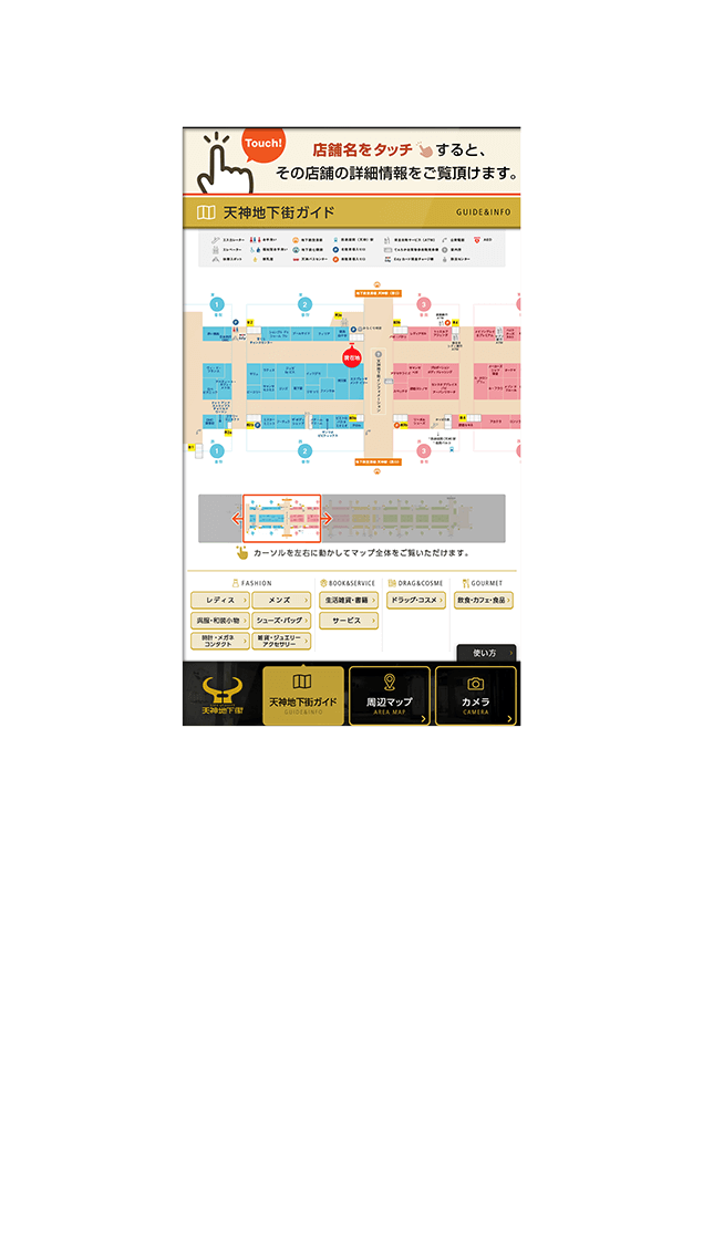 ●ご提供いただいた素材を基にしたマップで、施設や店舗の情報を確認